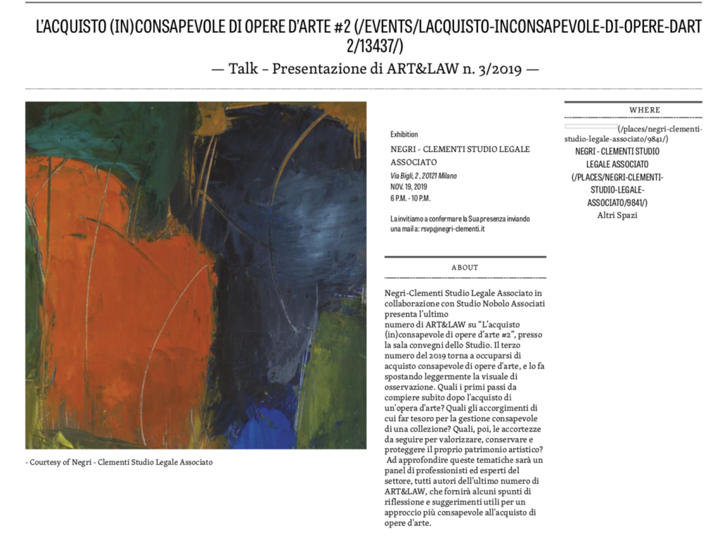 L’acquisto (in)consapevole di opere d’arte #2 – Talk – presentazione di ART&LAW n. 3/2019 | That’s Contemporary